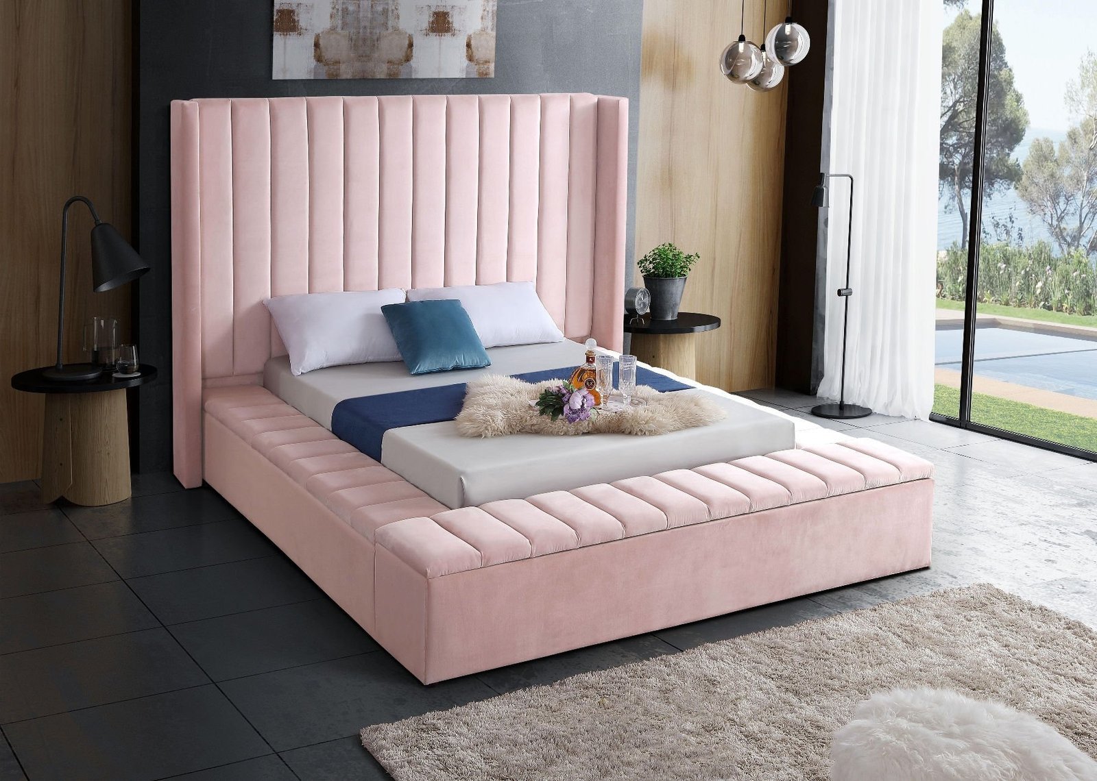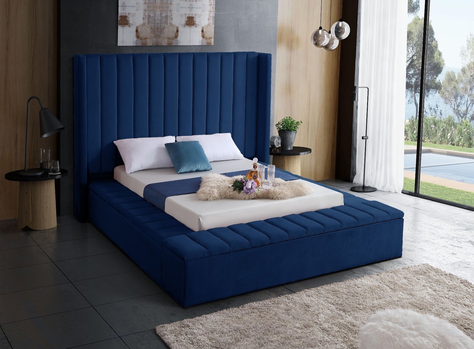 Immerse yourself in royal modernism with this Velvet King Bed. With its oversized headboard, this bed commands attention and becomes