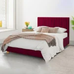 This bed frame is covered in fabric from the base to the incredibly tall headboard. A luxurious design exudes refinement and luxury in any bedroom. Our upholstered bed’s broad horizontal channels, which are tailored, create the ideal blend of casual and upmarket.