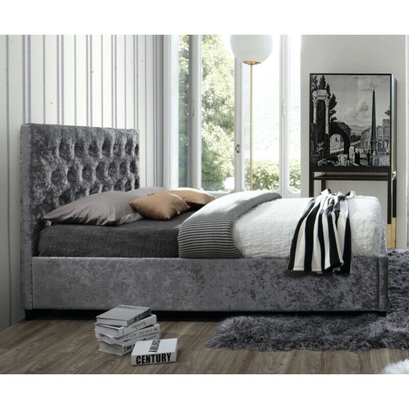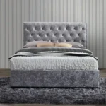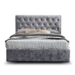 This lovely Craik Contemporary bed, which is exquisitely made of oak and plywood, will update the atmosphere of your bedroom. An upholstered base and an arched headboard with stitched diamond accents and button tufting are part of the stylish bed set. The modern bed is available in full, queen, or king sizes and has grey cloth upholstery.