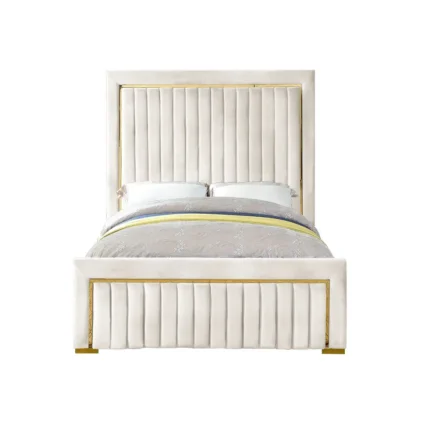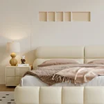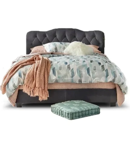 The most pleasant space in your home may be created by adding a Curved Headboard Bed from us, fluffy white bedding, and a ton of pillows. The sturdy headboard and frame of this bed are included. The headboard has deep diamond tufts and a curved, notched arch design.