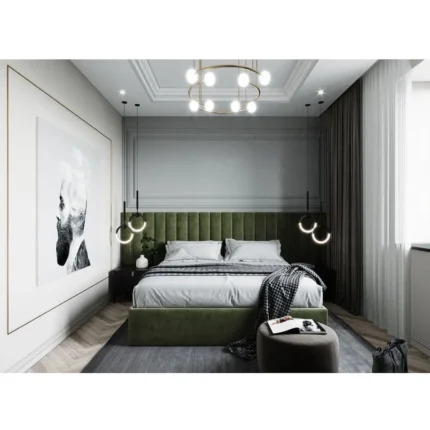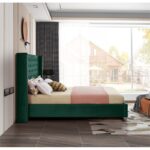 Take refuge in this vertical tufted bed’s royal modernism. This bed commands attention because to its extraordinarily tall headboard, which