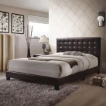 The timeless design of this platform bed will inspire a redesign of your bedroom. The bed has a tall headboard with button tufting for comfort and is made of polyurethane imitation leather in espresso hue. Every side of the bed is wonderfully made and carefully created to meet the demands of the customers in order to ensure your comfort and that of your loved ones.