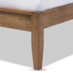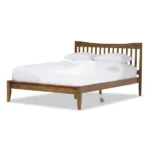 This bed’s modest yet beautiful form fits in well with a variety of home design trends. For an outfit that exudes boutique hotel flair, add accessories made of velvety velvet and fake fur. The bed frame is long-lasting since it is made of strong rubberwood and poplar, two eco-friendly woods. Retro styling of the item is highlighted by the headboard’s combination of slatted design and tapering degree. The style is completed by the tapering legs. While the bed under clearance area offers some storage, the low footboard gives the impression of spaciousness.