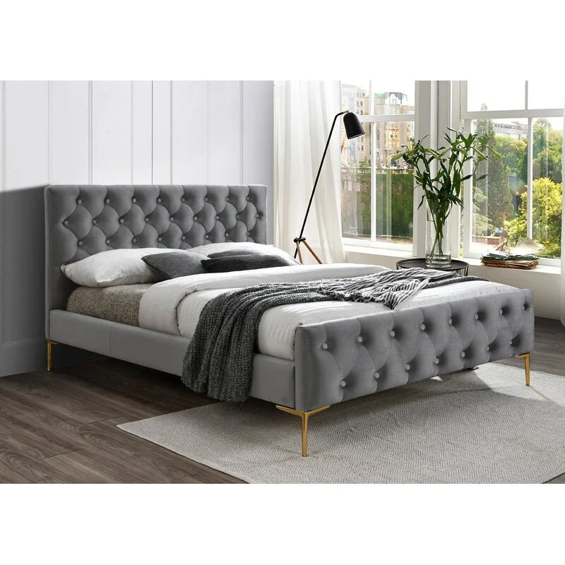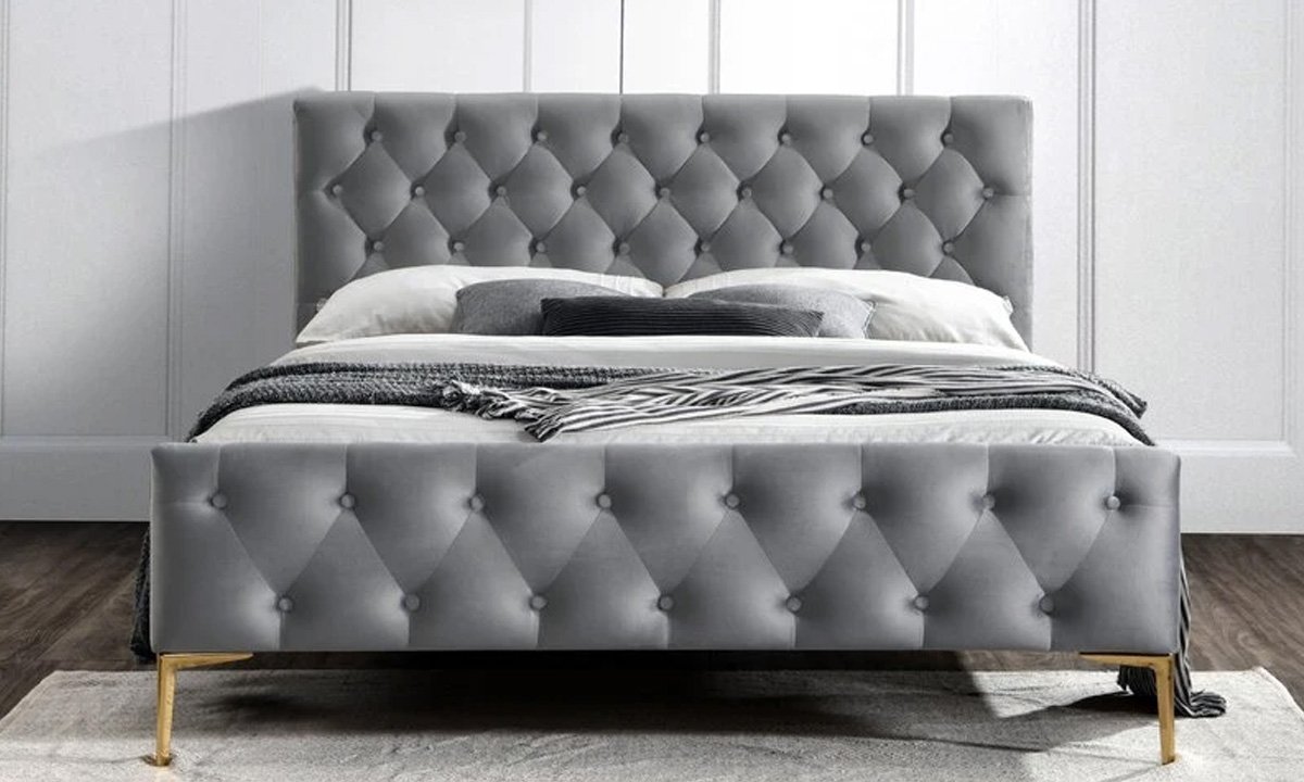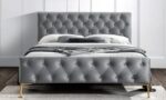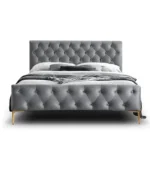A stylish bed with a modern look and a tall, heavily cushioned headrest. The bed’s button-tufted design has a classic appearance, but when paired with the headrest’s vertical lines, it also has a more contemporary feel. The legs offer a strong, solid, and long-lasting construction while being correctly proportioned and without detracting from the stylish appearance.