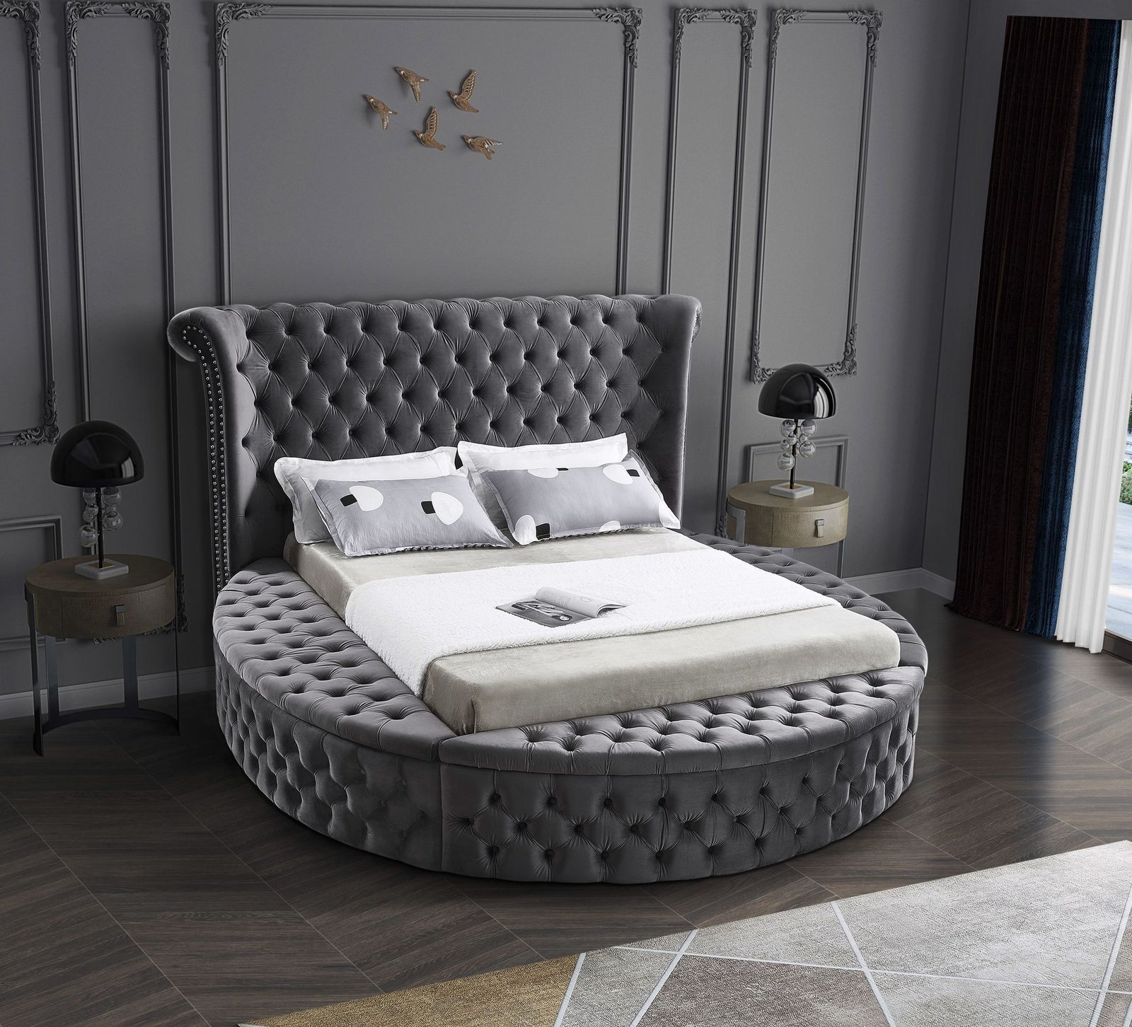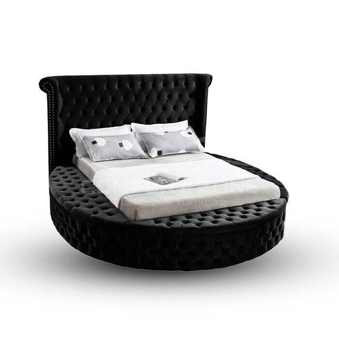 The Round bed’s complete upholstery adds plenty of texture and tone to your bedroom. The headboard’s appeal is enhanced by the tufted accent and delicate design. When reading or answering late-night emails, the tufted headboard is the ideal place to lean. The plush padding all around prevents unintentional toe stubs and also makes it perfect for households with family members. Your blankets and any additional items can be stored under this bed.