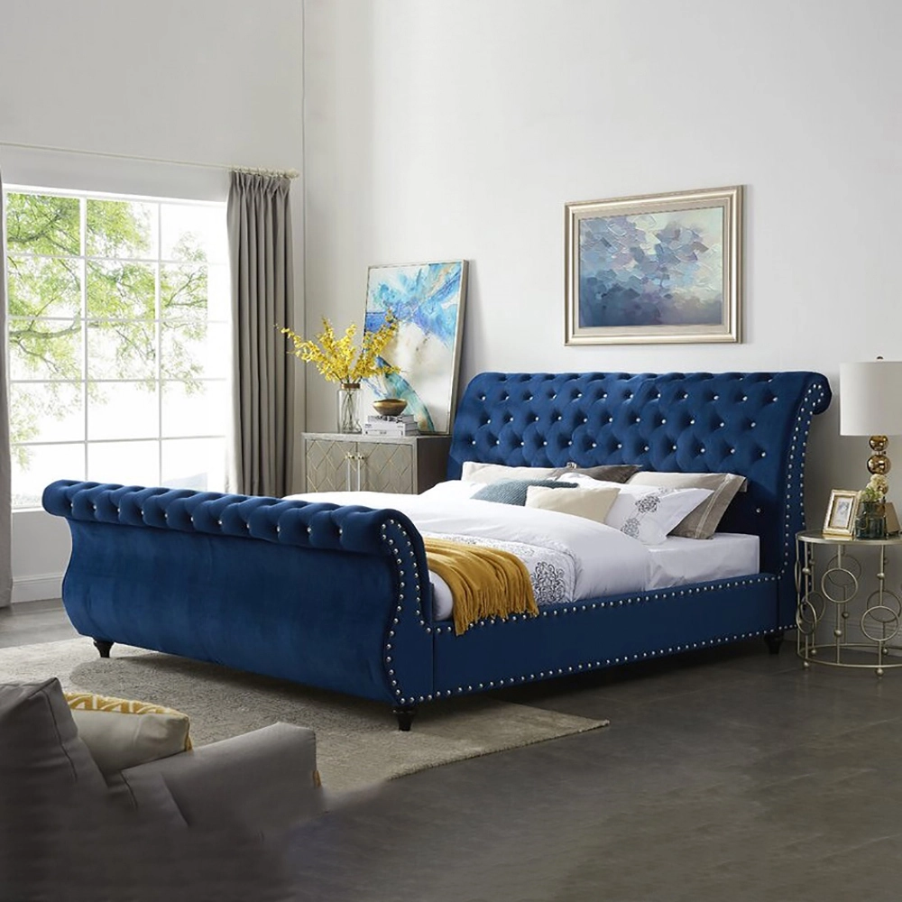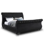 The Vera bed’s extensive upholstery adds plenty of texture and tone to your bedroom. Its attractiveness is enhanced by the soft piping accents and headboard’s delicate curvature. The velvety, tufted headboard is the ideal place to lounge against while reading or answering late-night emails. The plush padding all around prevents unintentional toe stubs and also makes it perfect for households with family members.