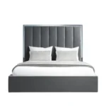 - A lavish double ottoman bed featuring a particularly tall headboard