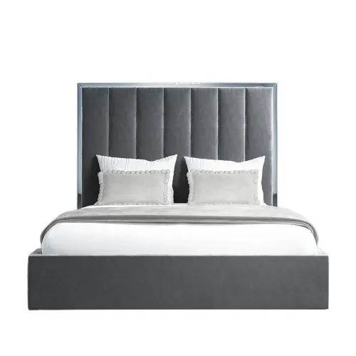 - With opulent soft-touch grey velvet for the upholstery