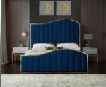 Gold trim high headboard velvet upholstery bed