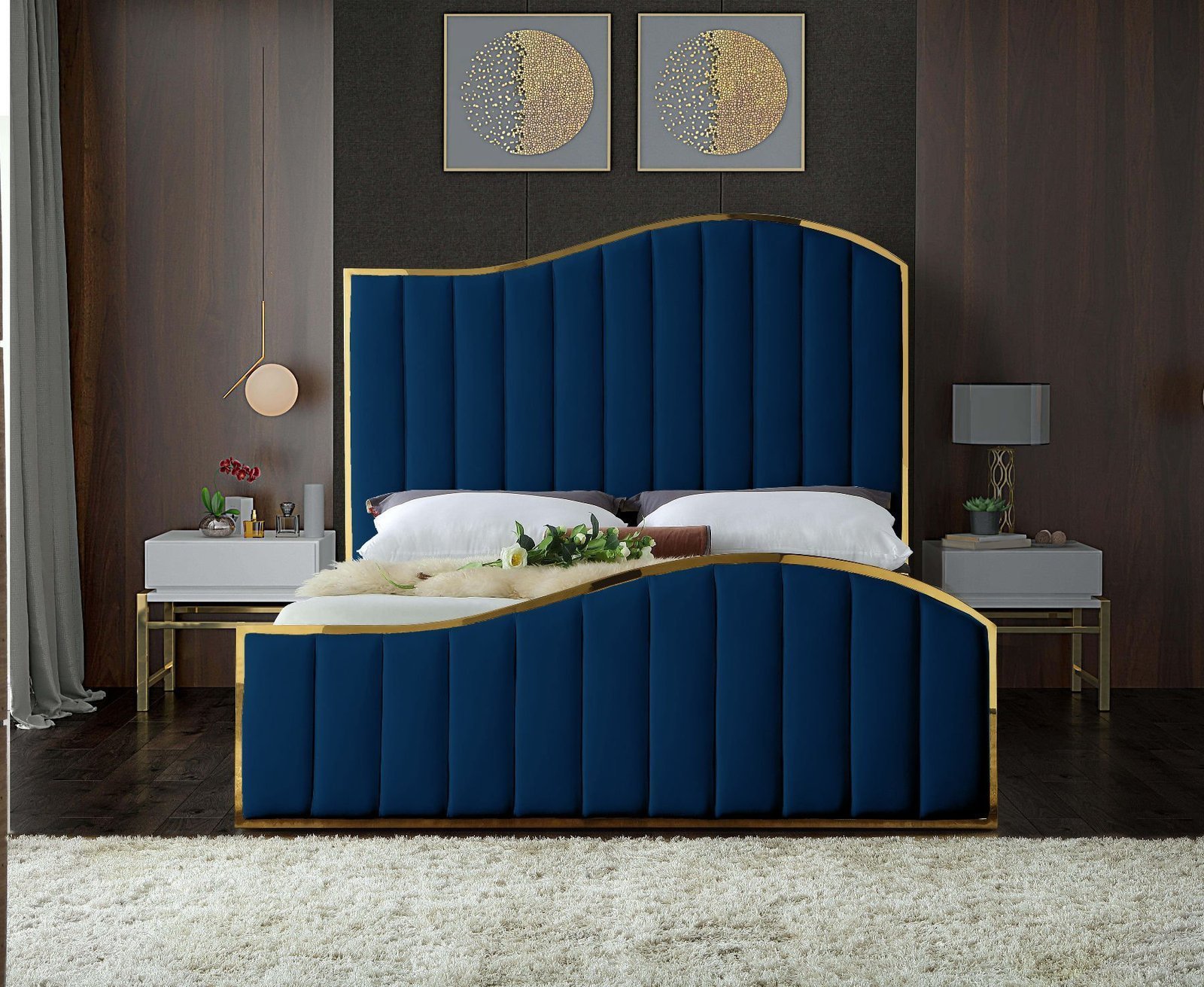 Immerse yourself in royal modernism with this Velvet King Bed. With its oversized headboard, this bed commands attention and becomes